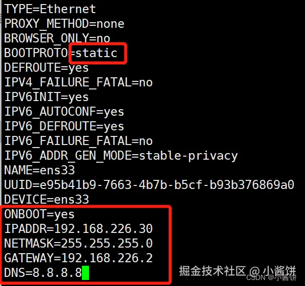 vim /etc/sysconfig/network-scripts/ifcfg-ens33