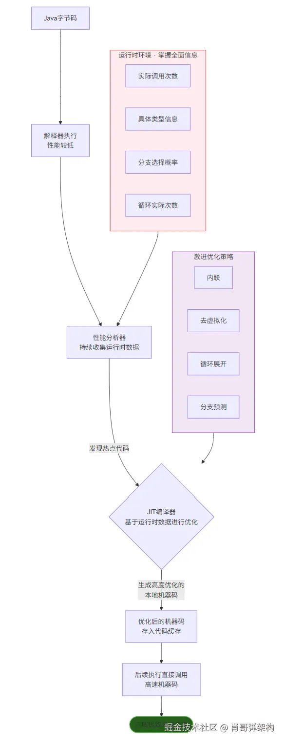 handleRequest方法)被频繁调用,被判定为“热点”时,JIT编译器被触发。 - 激进优化:JIT编译器不是简单地将字节码编译成机器码,而是基于收集到的运行时数据进行极其大胆的假设和优化(见图中的优化策略列表)。