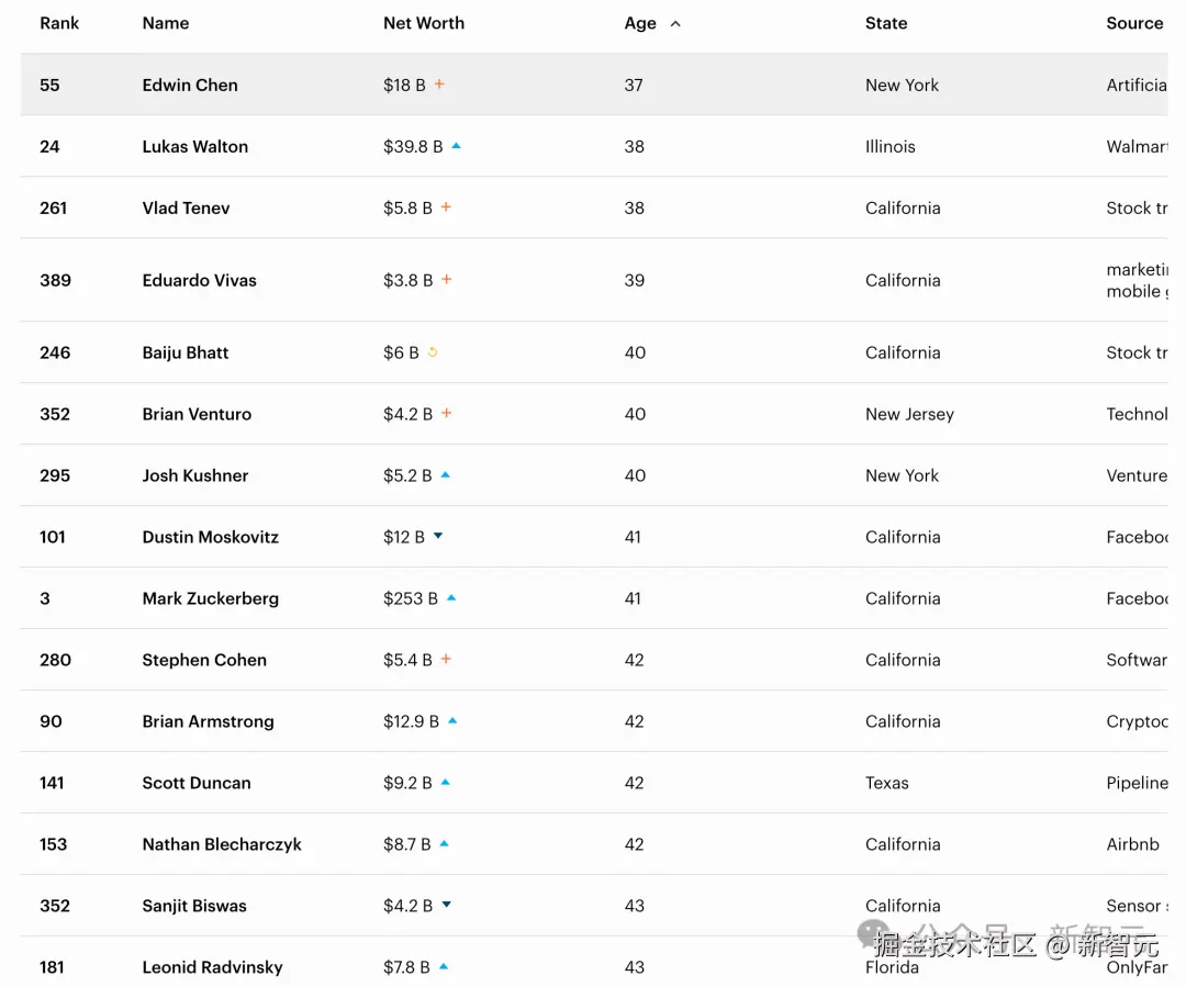 如果按照年龄排序,37 岁的 Edwin Chen 是新晋的最年轻亿万富翁。