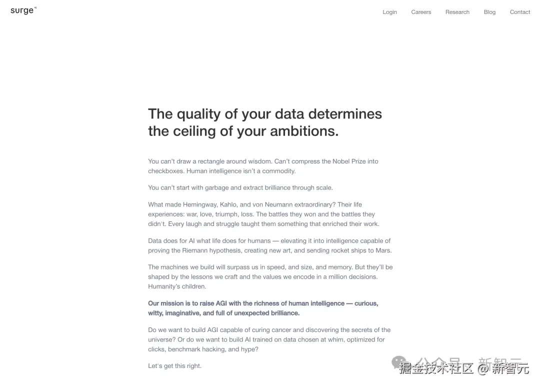 即使是 Surge AI 的官网也是同样的低调,低调到主页只有一堆文字,没有酷炫的 UI 和精致的互动效果。