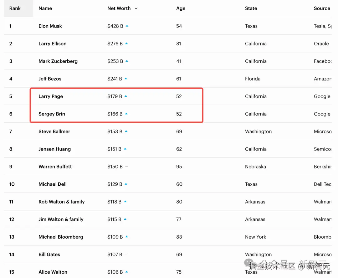 而如果按照净资产的排序,排名前 15 的最年轻富豪是谷歌的两位创始人,拉里 · 佩奇和谢尔盖 · 布林(52 岁),以及马斯克(54 岁),但没有一个人是 40 岁以下,年龄最大是巴菲特(95 岁)。