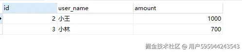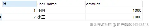 一开始时,用户小明有余额1000,小王有余额1000