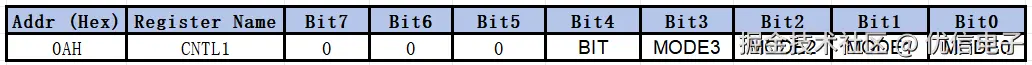 9、CNTL1:配置磁力计工作模式。
