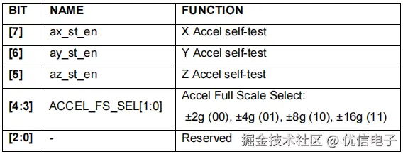 7、ACCEL_CONFIG:配置加速度自检和满量程