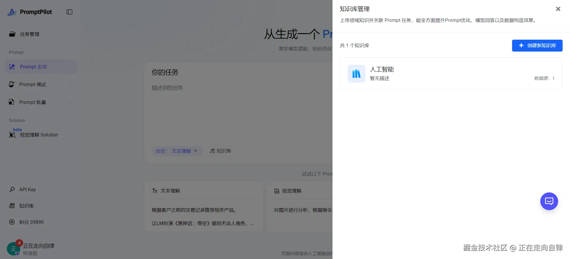 在对 PromptPilot 的理念和核心能力有了初步认识之后,接下来让我们亲自上手,深入体验一下它的各项功能。PromptPilot 就像是一个功能强大的 AI 工程生态系统,涵盖了提示词生成、多模型评测、知识库融合、多模态理解等多个重要功能模块 ,每个模块都紧密协作,共同为用户提供高效、优质的提示词工程服务。
