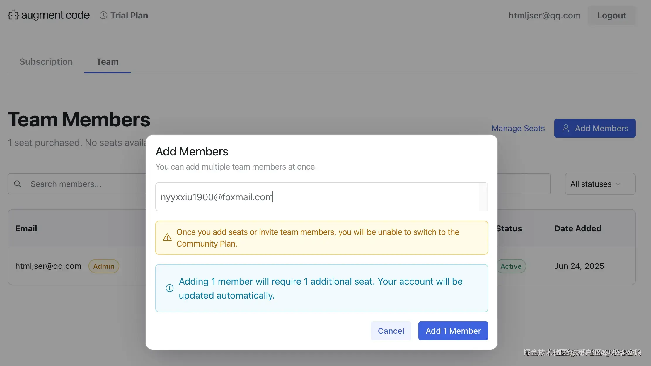 如果用当前任一邮箱注册过 augment,请点击删除,重新设置换成其他的即可。