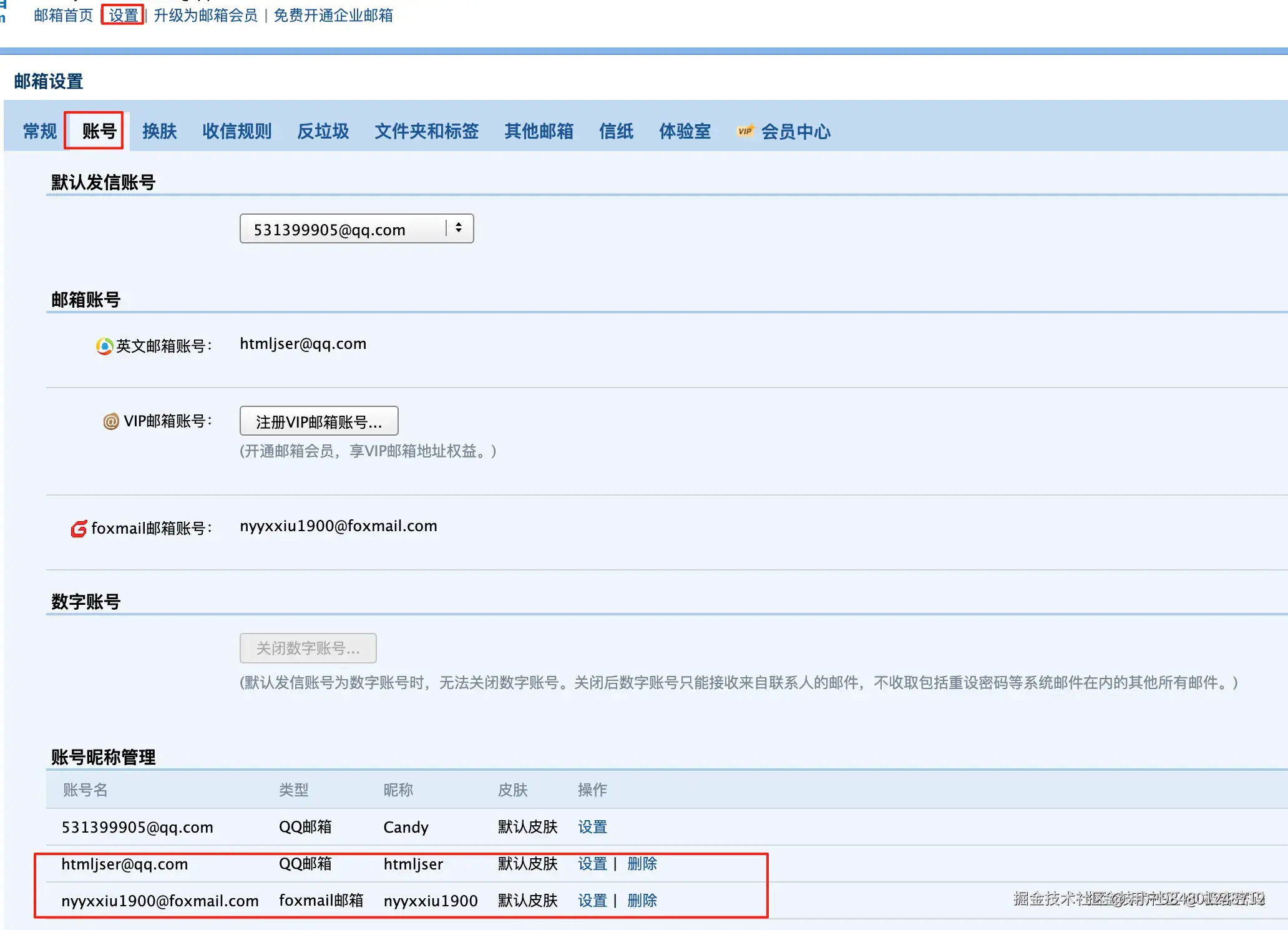 方便起见,下文中都用 A 和 B 分别代替英文邮箱和foxmail邮箱