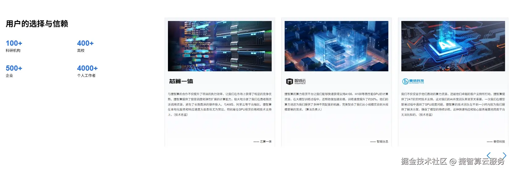 行业趋势表明,4090 云服务器租赁正朝着 “性能虚拟化、配置弹性化、服务场景化” 方向演进。性能虚拟化通过优化 Hypervisor 层实现算力损耗控制在 5% 以内,保障 4090 性能接近物理机水平;配置弹性化支持显卡、CPU、内存等资源的实时调整,满足动态负载需求;服务场景化则针对不同领域预装软件与优化参数,降低使用门槛。捷智算作为深耕算力服务领域的专业平台,精准把握这一趋势,构建了行业领先的 4090 云服务器租赁体系,让高性能算力实现灵活交付。捷智算的 4090 云服务器采用自研轻量化虚拟化技术,将性能损耗控制在 3% 以内,配合英特尔至强金牌 CPU 与 DDR5 内存,形成 “算力 - 带宽 - 存储” 全链路性能支撑,同时支持单卡至 8 卡集群的弹性配置。
