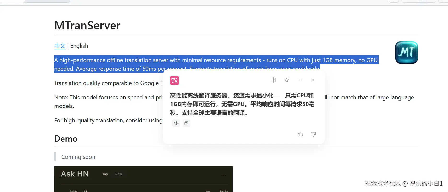 最后贴一下项目的地址 github.com/xxnuo/MTran…