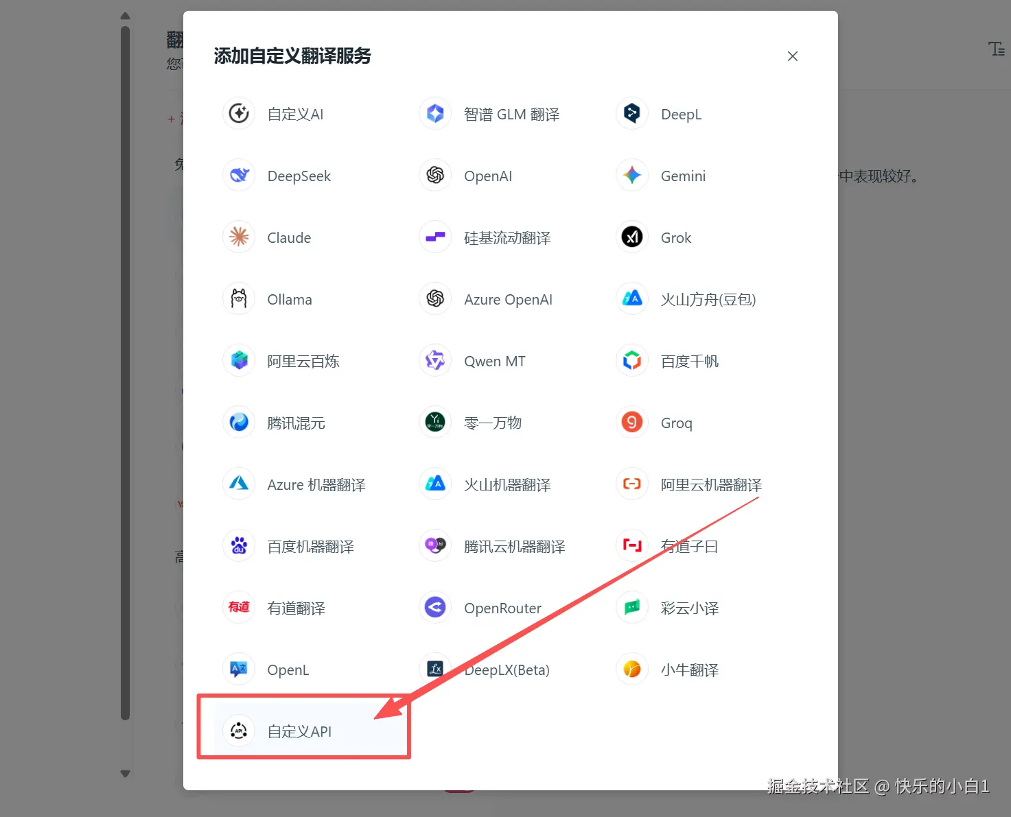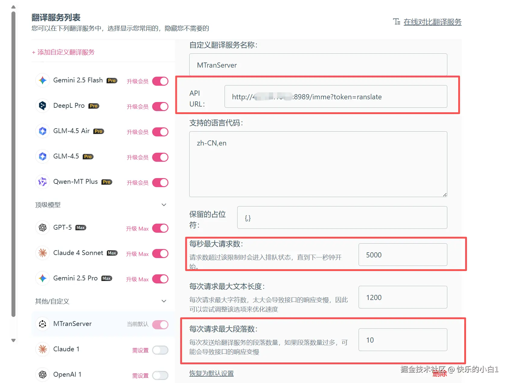 5.然后回到上面的翻译服务,添加自定义翻译服务!