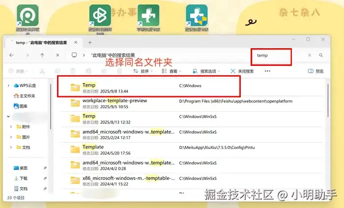步骤1: 打开“此电脑”,在右上角的搜索框中输入“temp”(不分大小写),按下回车键开启搜索;