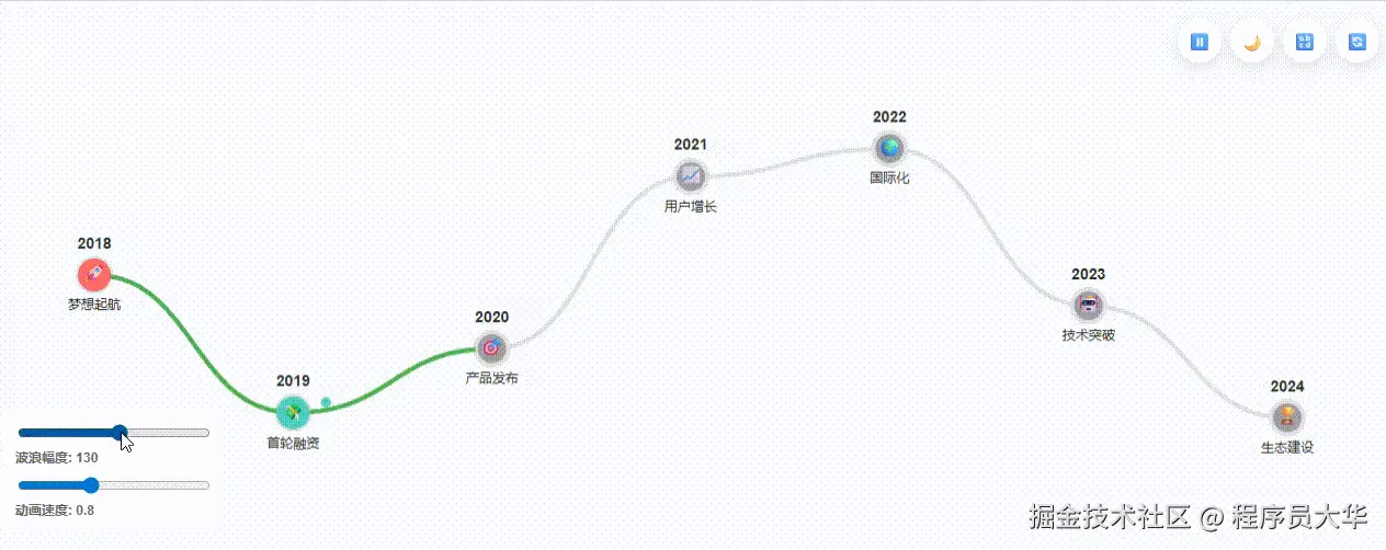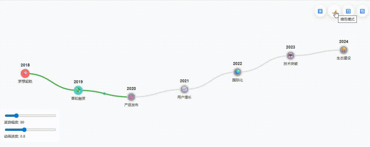 用户看到的是一个自动“游动”的高亮节点,沿着时间轴前进