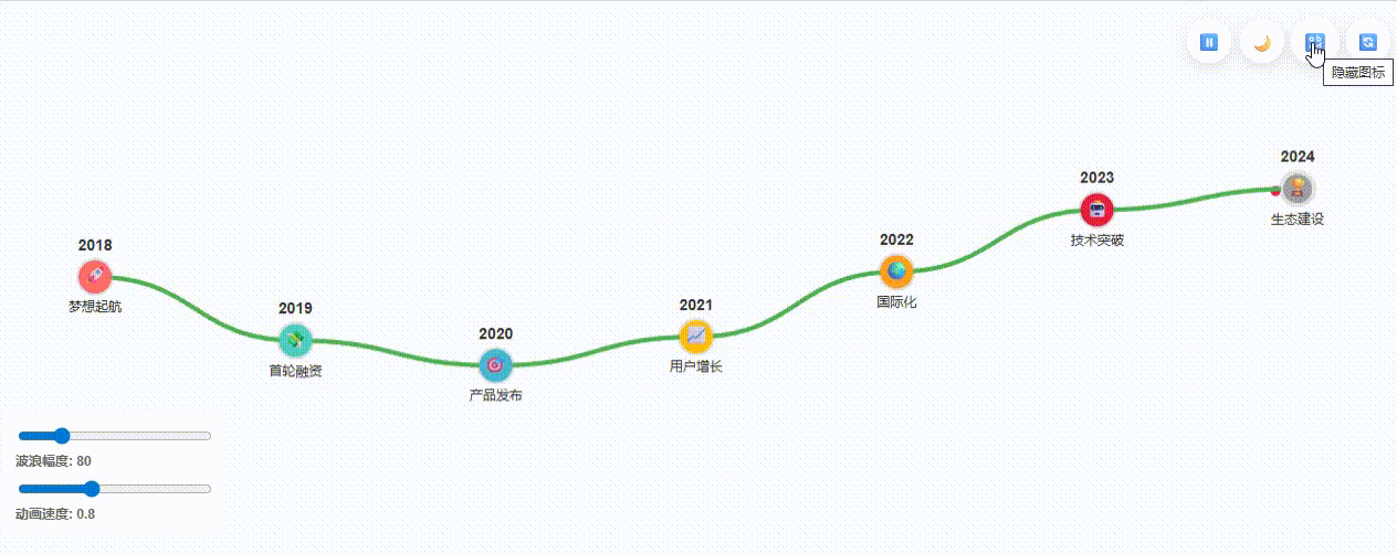 视觉冲击力强:波浪形布局 + 自动播放动画
