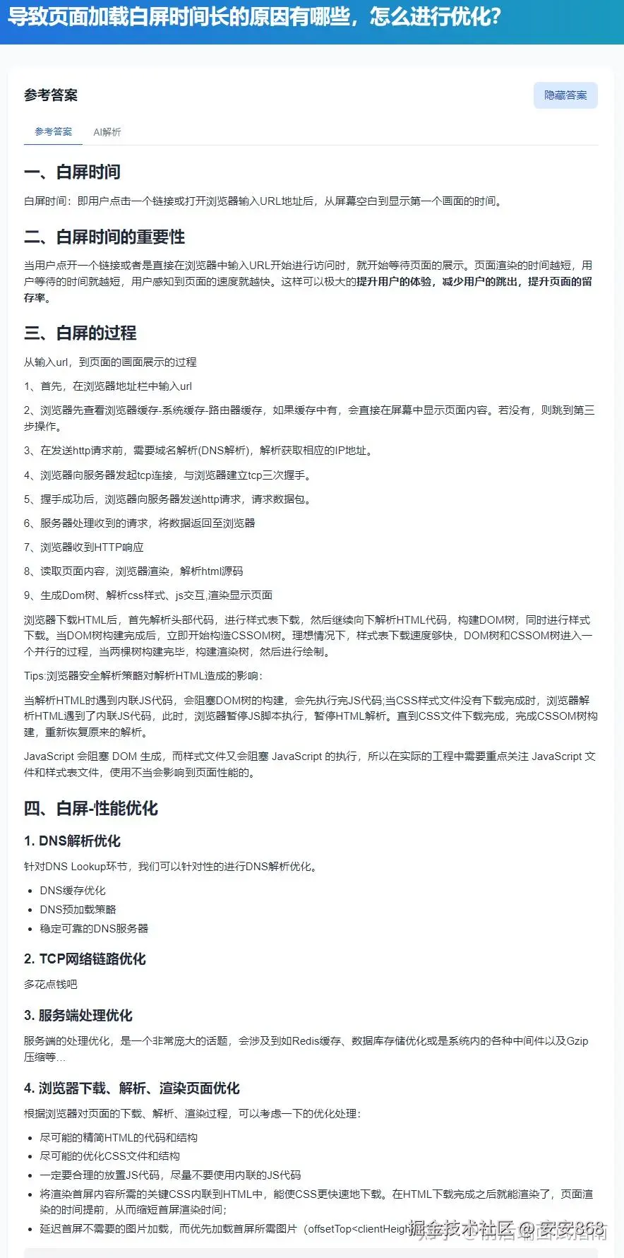 导致页面加载白屏时间长的原因有哪些,怎么进行优化?