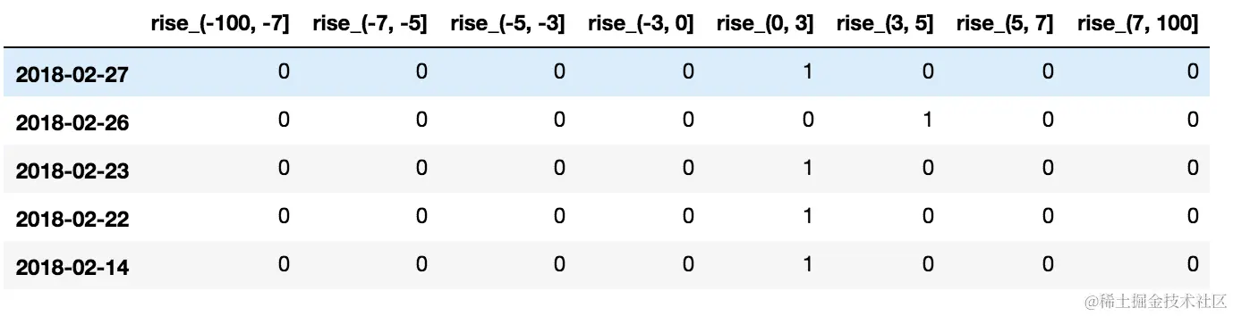 3.3 股某票涨跌幅分组数据变成one-hot编码