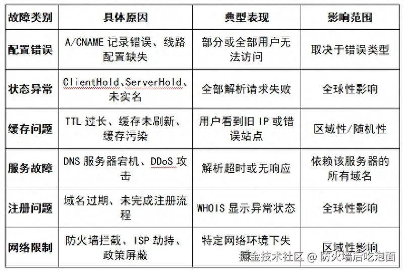 域名解析故障的原因多种多样,根据故障发生的环节和性质,我们可以将常见原因分为以下几大类: