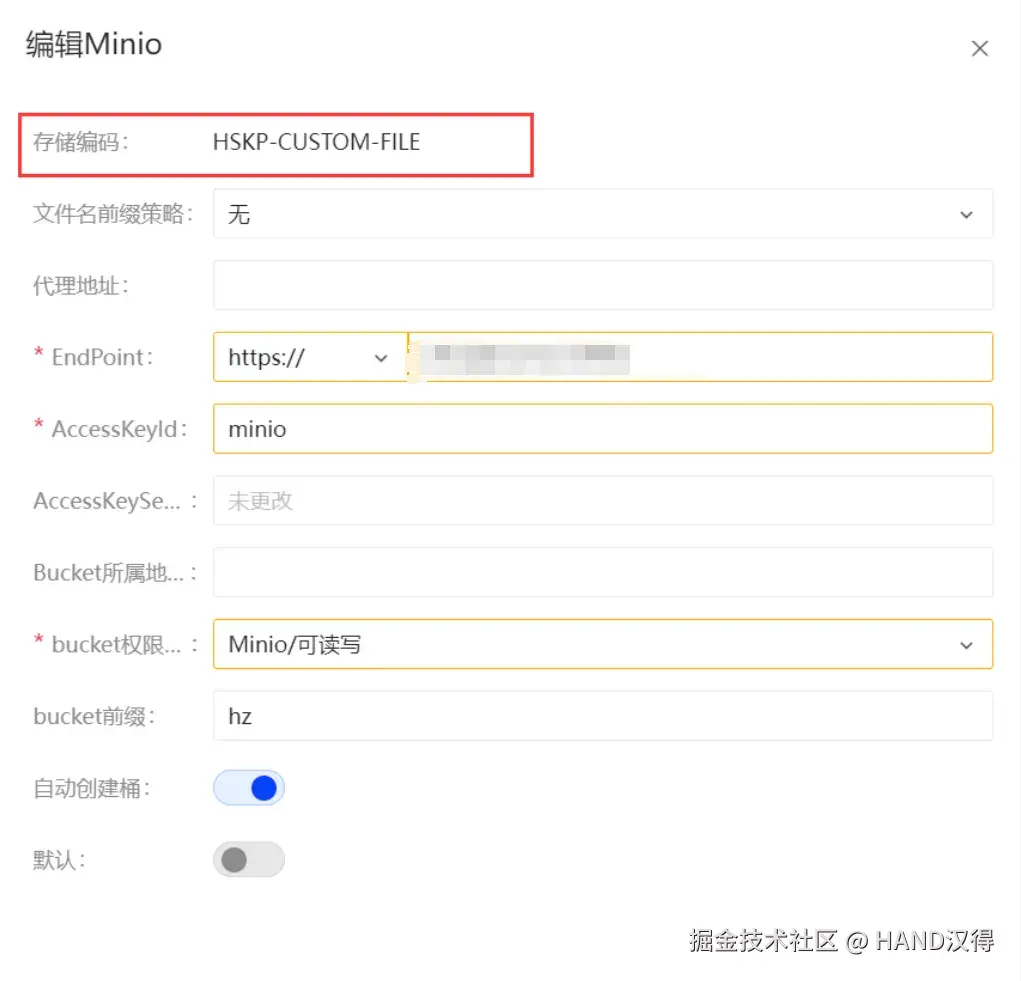 ◈ 然后在文件存储配置中需要同步新增对应的存储编码配置,注意将文件名前缀策略改为“无”