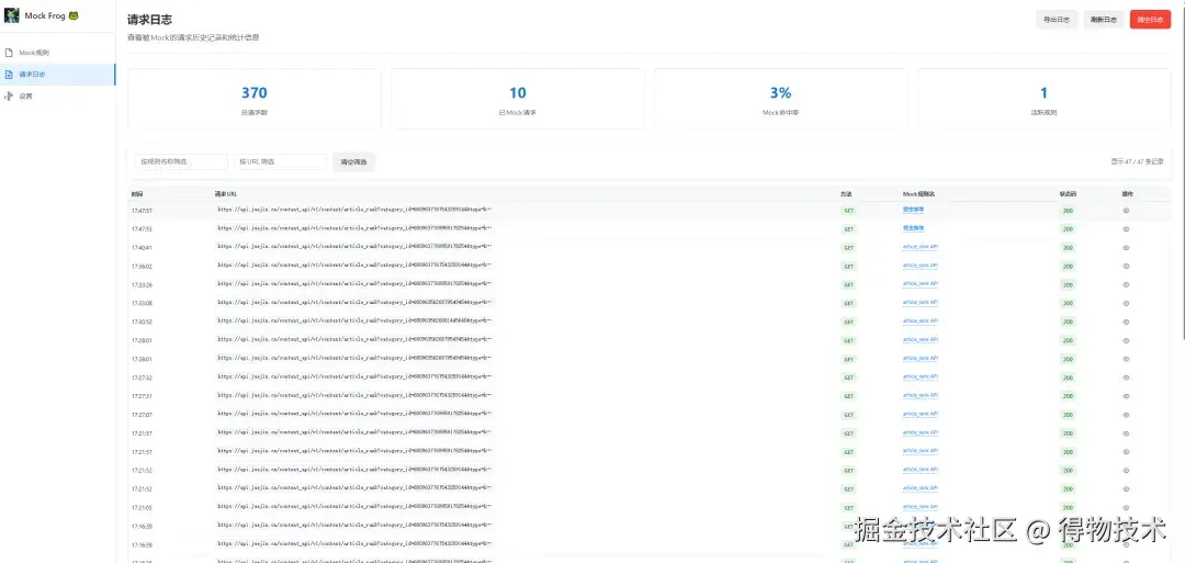 作用:记录所有 Mock 请求的详细信息,便于调试。