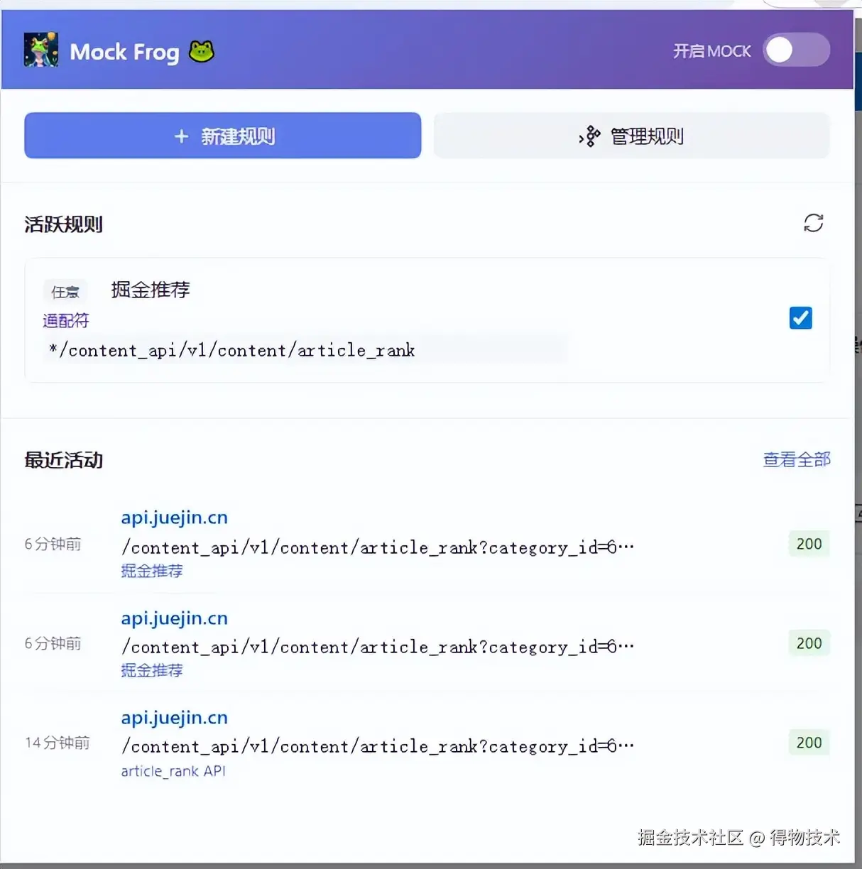 - 点击浏览器工具栏中的 Mock Frog 图标;