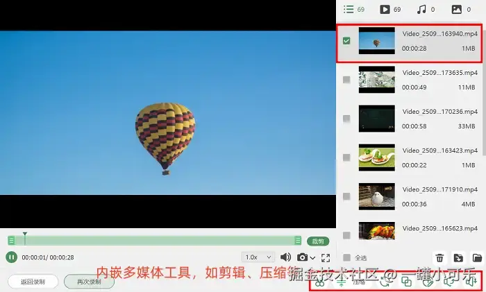 步骤3:录制结束后,如果你发现视频存在多余片段,或者你想增加视觉效果,也不用费时费力去找别的软件。直接在软件内点击 “高级剪辑” 功能,即可对视频进行优化:删除无需保留的片段,同时还能为视频添加转场特效,让最终的视频内容更连贯、观感更好。