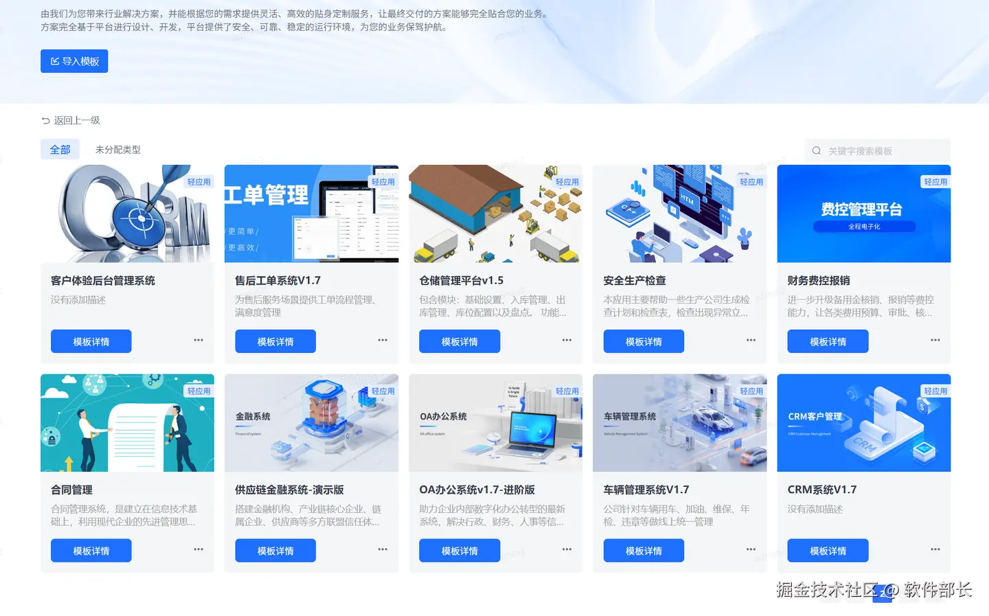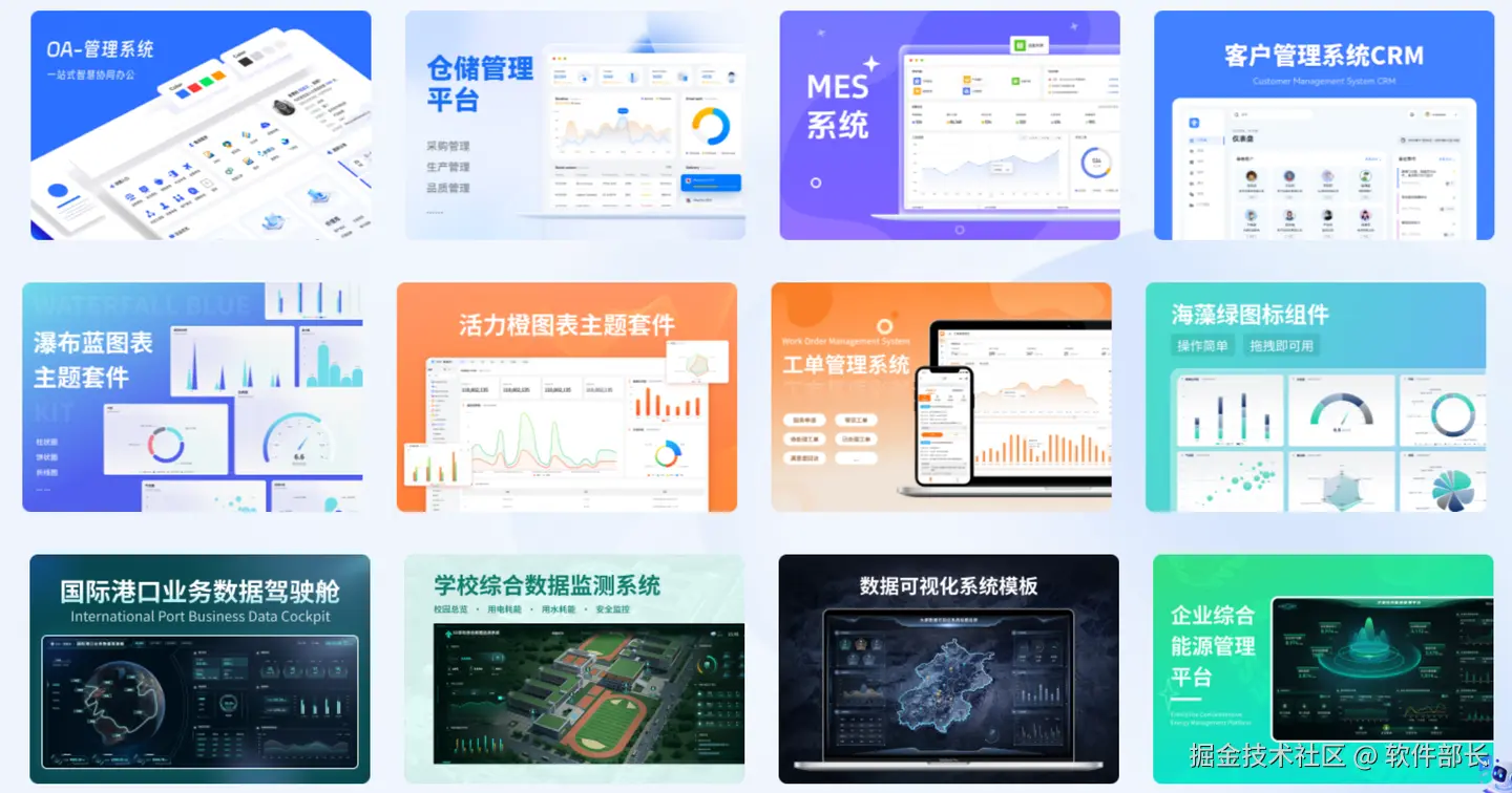 - **功能特点:**拥有多端适配能力,支持Web、H5、小程序、APP四端同步生成,提供了多种行业解决方案库,比如供应链、ERP、智慧工地等20+行业模板。支持对接企业现有的ERP、OA、SRM、数据库、API等系统,有效打通数据孤岛。同时支持多人协作和组件级分支管理,适用于复杂项目的并行开发和持续交付。