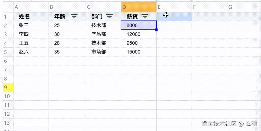 ['王五', 28, '技术部', 9500],
