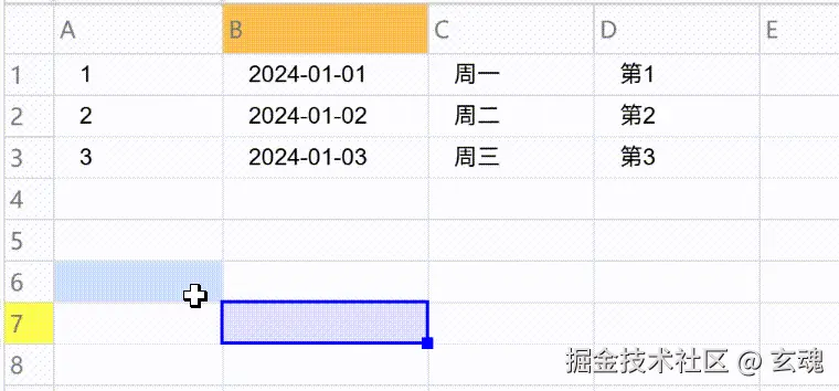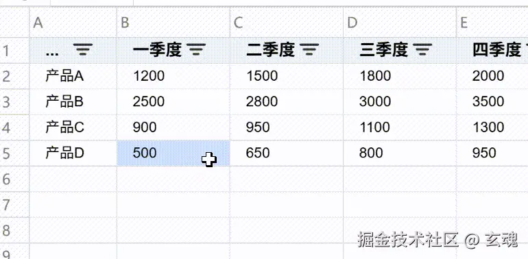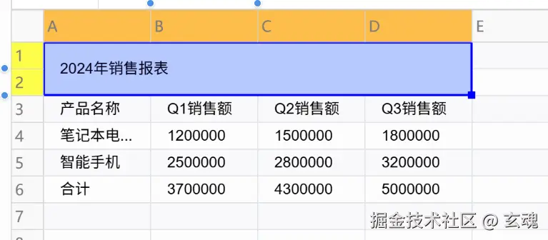 单元格合并是报表制作中的常用功能,VTable-Sheet提供了灵活的合并能力,支持任意区域的单元格合并和拆分。