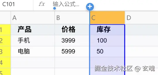 可视化操作:鼠标悬停时显示添加按钮,点击即可新增行列
