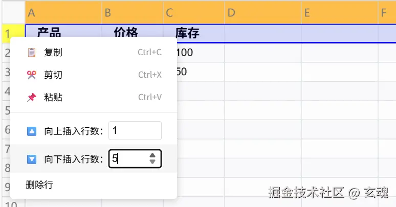 VTable-Sheet通过AddRowColumnPlugin插件提供了直观的行列操作功能: