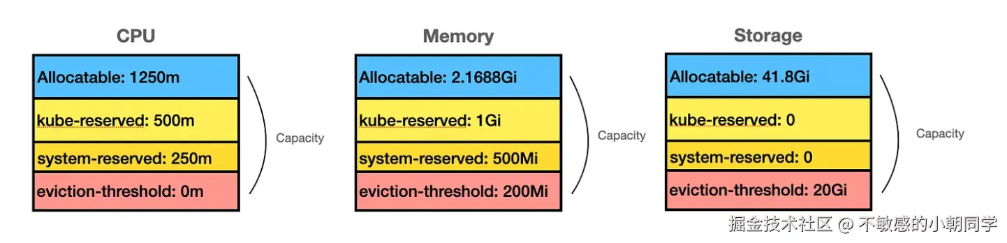 Capacity = Allocatable + kube-reserverd + system-reserverd + eviction-threshold