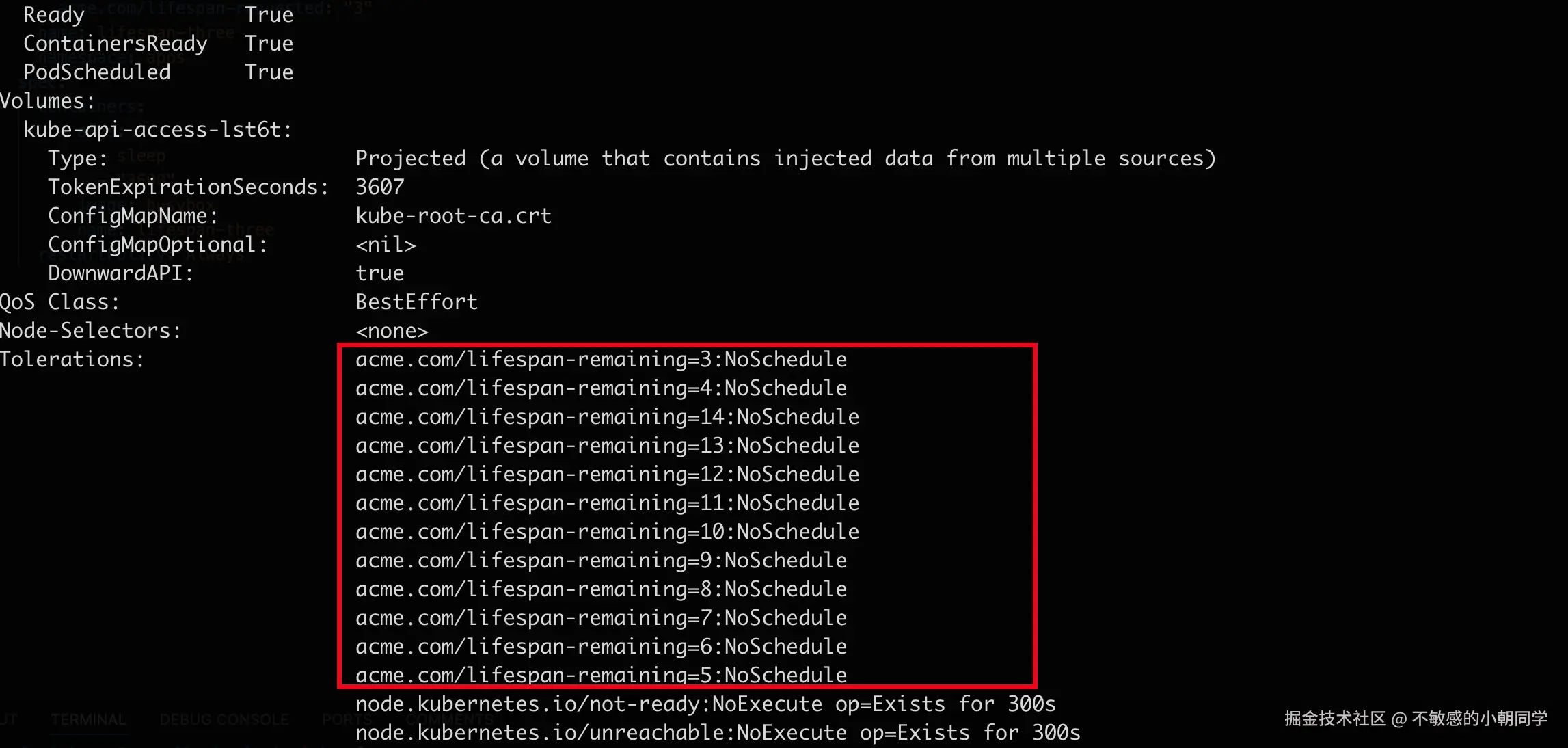 该 pod 的标签上的 acme.com/lifespan-requested 的值为3,则理论上创建成功之后会增加到 14
