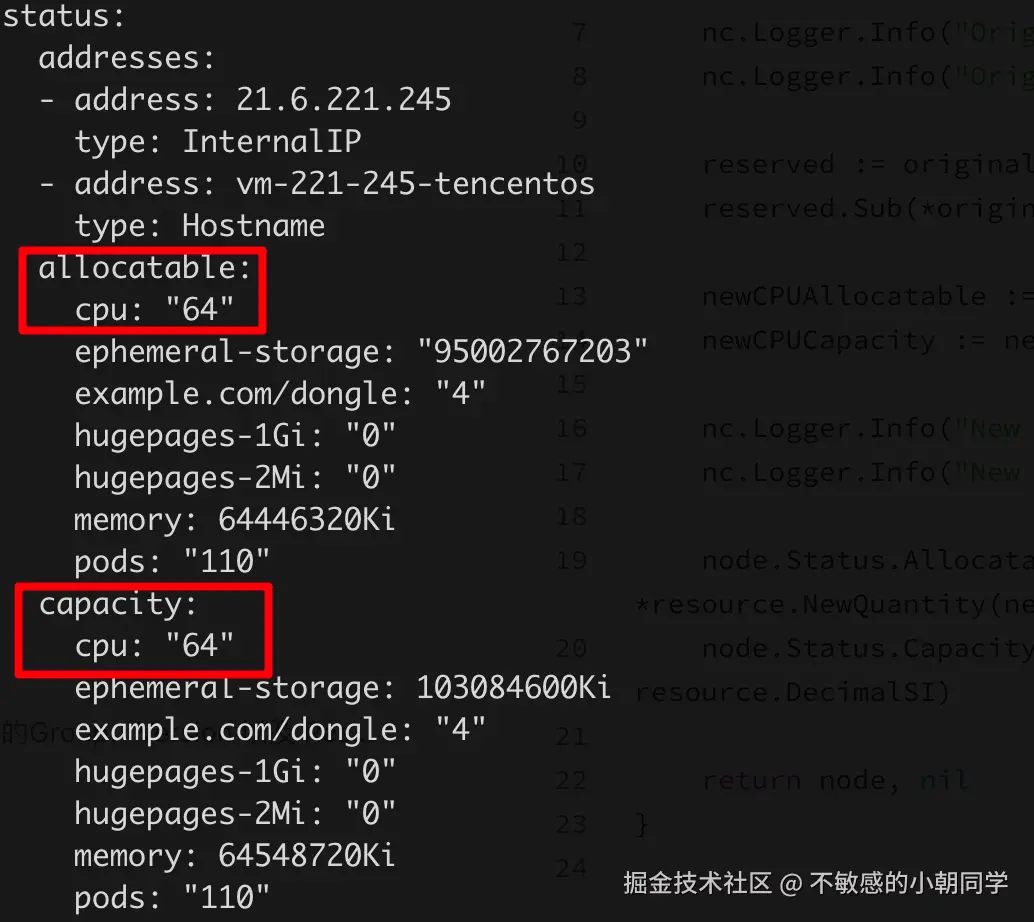 我们来做一个实际的功能,修改 node 的 allocatable 信息来做资源的超卖
