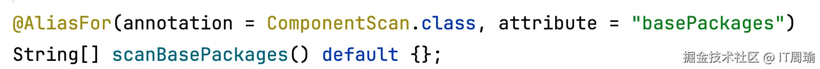 相当于一个@SpringBootApplication注解同时拥有以上三个注解的功能,因此也就拥有了@ComponentScan注解的功能,也就是Bean扫描,@SpringBootApplication注解中的scanBasePackages属性就是用来设置扫描路径的: