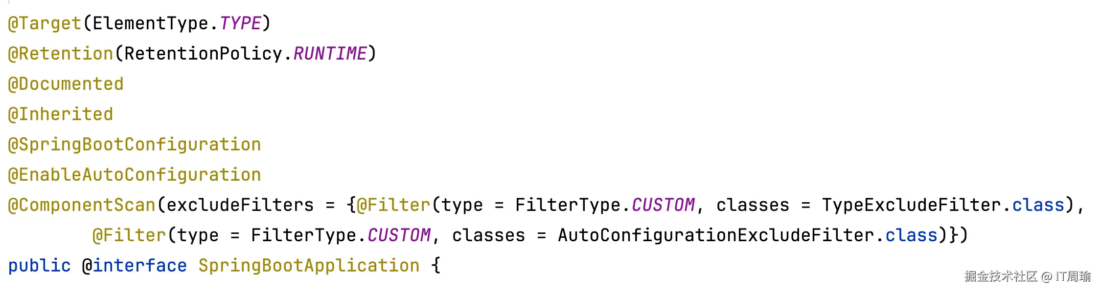 @SpringBootApplication和@ComponentScan是重复的,@SpringBootApplication本身是一个复合注解: