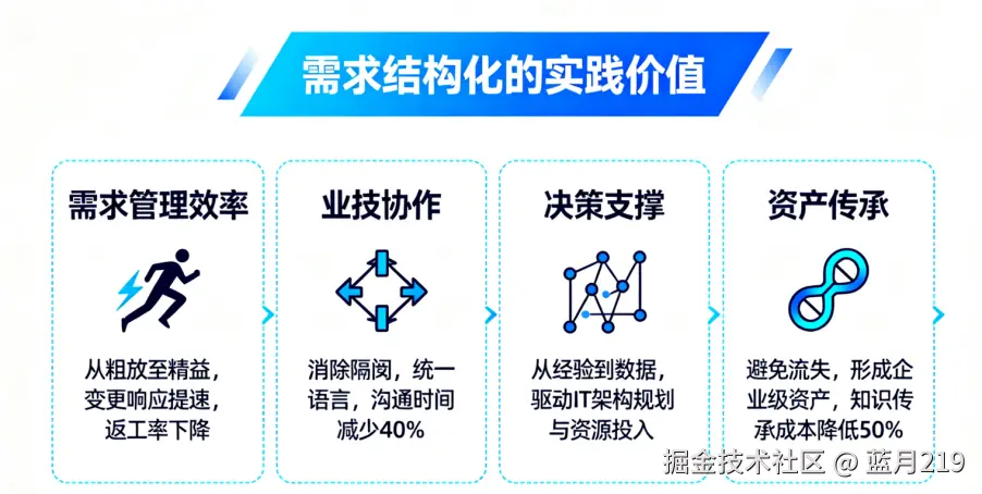 Visual RM 的需求内容结构化,不仅解决了传统管理的痛点,更从 “效率、协作、决策、资产” 四大维度为企业创造价值,尤其在金融行业等需求复杂、合规要求高的场景中,价值更为显著。
