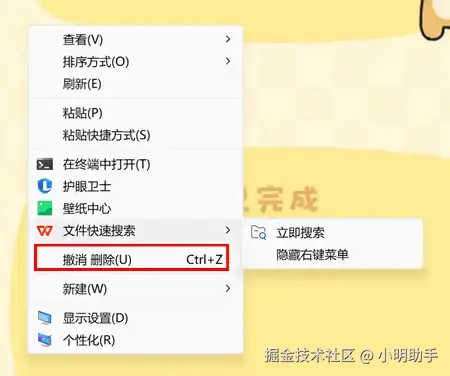 步骤2: 在该地方的空白处按下鼠标右键,选择“撤销 删除”。