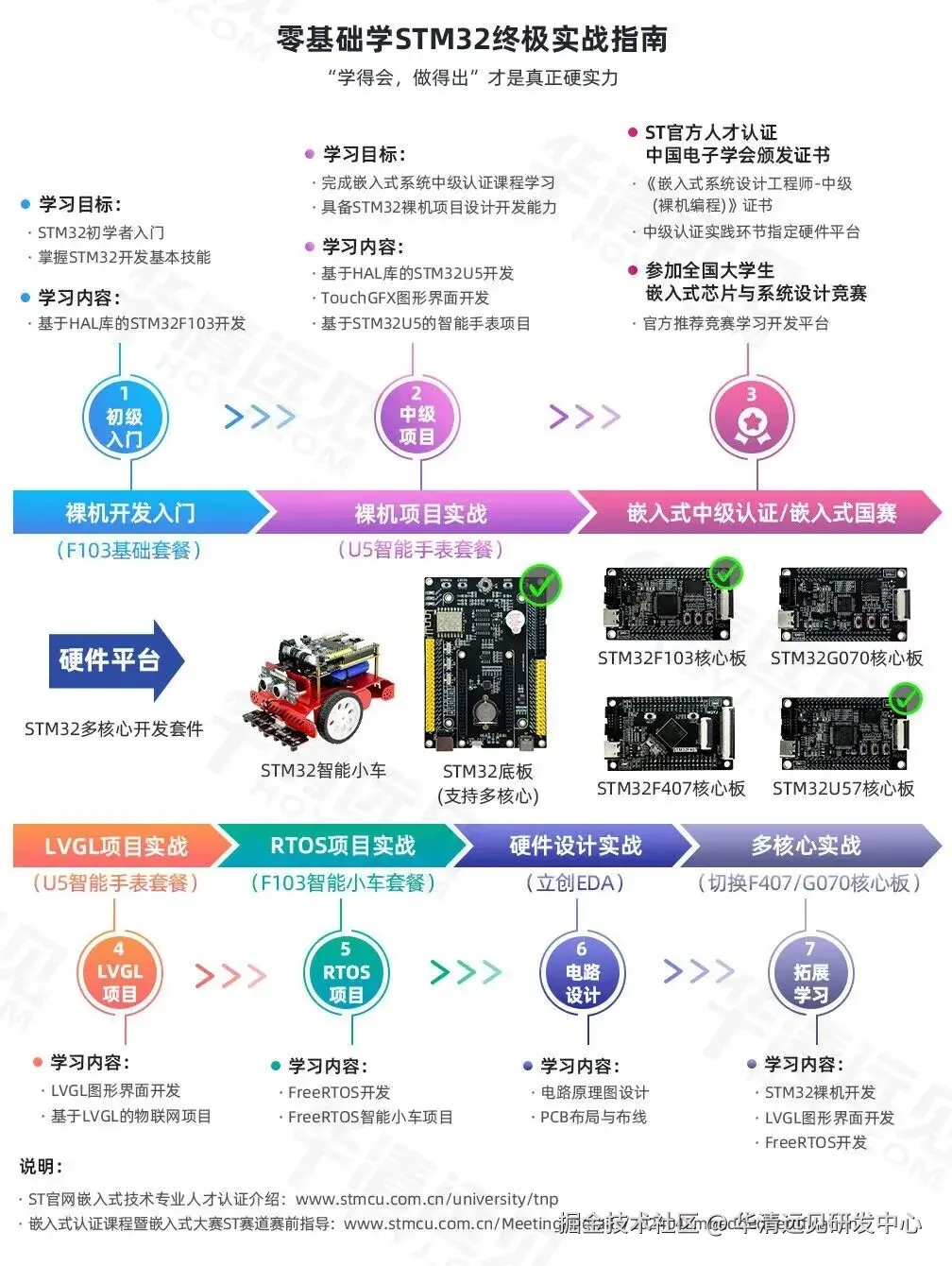 配套资源涵盖 “裸机开发→智能手表→LVGL 物联网→RTOS 智能车→硬件设计” 全学习路径,近500讲视频(超200小时)+源码+手册+图纸,更支持QQ群答疑,适配入门学习、毕设、竞赛等场景,助力快速夯实软硬件综合开发能力。