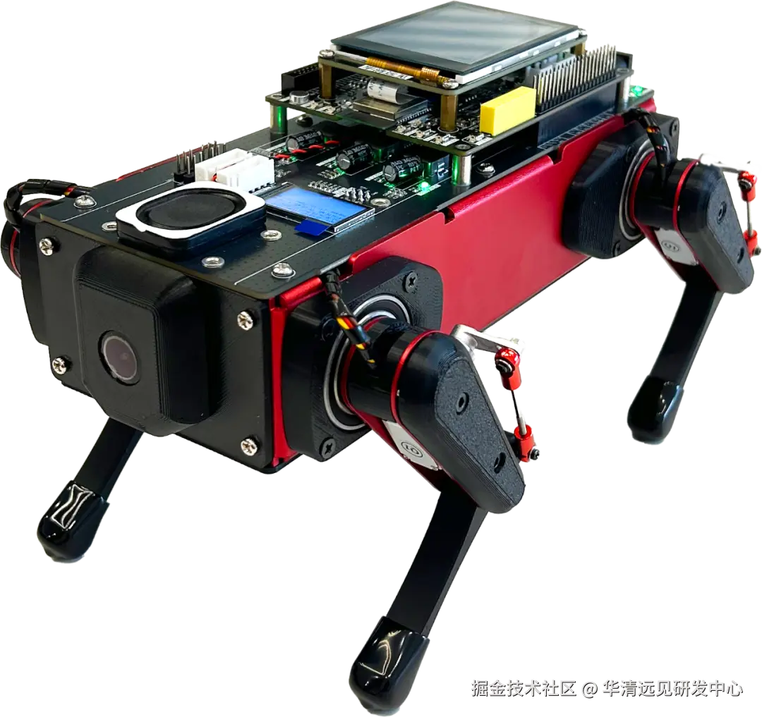 此次参展的 “智能机器狗” 是华清远见全新推出的综合性项目,融合运动学、自动控制、无线通信与 AI 视觉等核心技术,开发者可深入探索机器人领域关键知识:从逆运动学(IK)解算、舵机控制、步态算法设计,到 IMU 姿态融合、无线遥控、AI 功能集成。目前已实现 “趣味动作(内置)、仿生步态(Trot/Walk)、六轴 IMU 模式、姿态控制(逆解)、AI 语音交互、AI 视觉识别” 六大功能,让开发者亲身感受 “从零打造智能机器人” 的成就感,为嵌入式与机器人交叉领域学习提供全新实战场景。