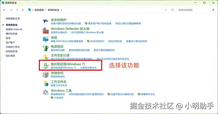 第2步: 在“系统与安全”的主面板中单击“备份与还原”选项: