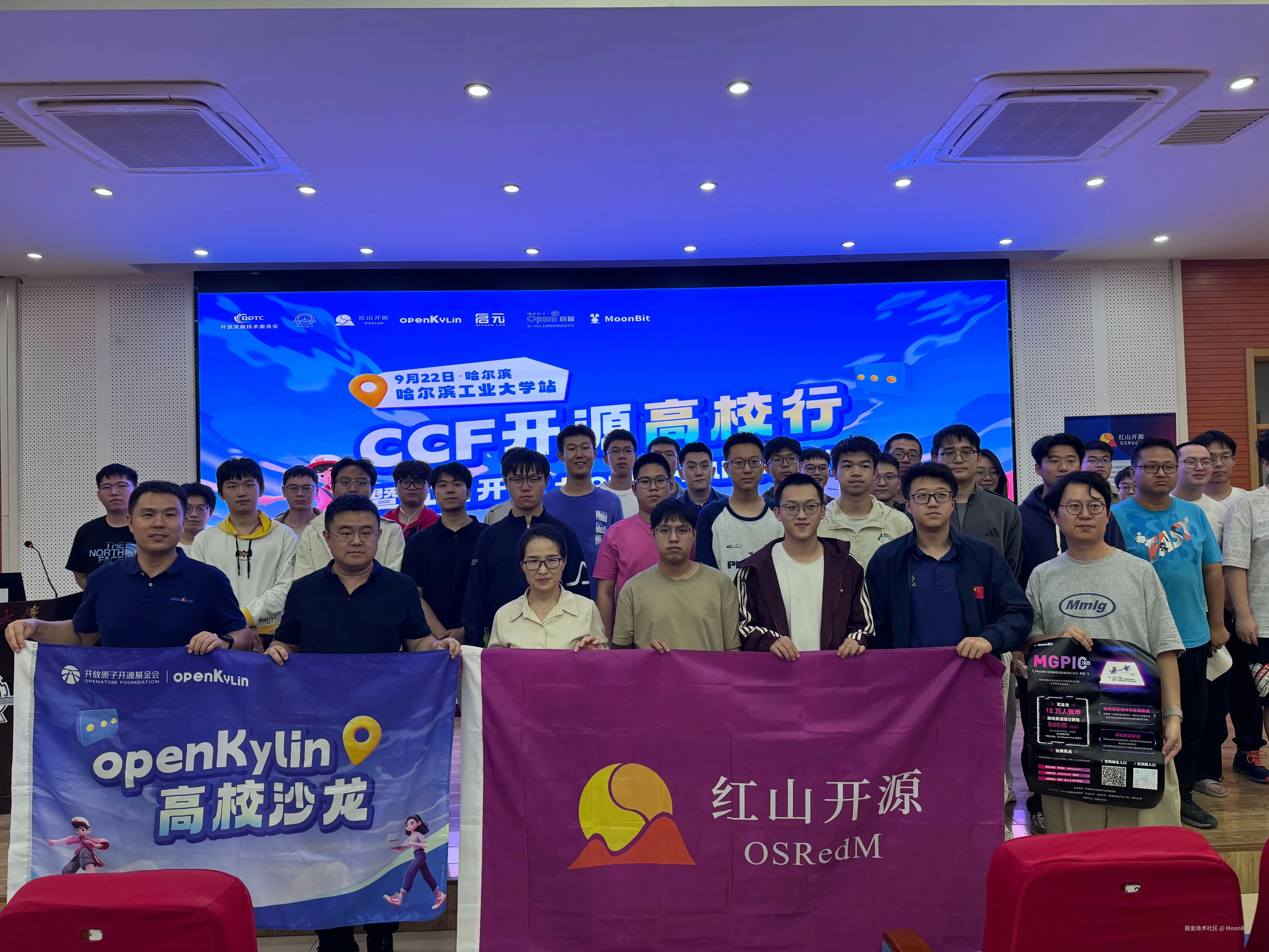 9月22日,CCF开源发展技术委员会“开源高校行”暨 MoonBit +红山开源 + openKylin高校行活动走进哈尔滨工程大学及哈尔滨工业大学。本次活动以“人工智能+开源创新生态”为主题,哈尔滨工程大学计算机学院党委书记孙荣平等领导出席,两所高校有近170名学子来到活动现场。