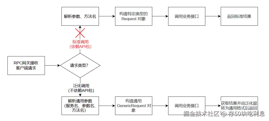 RPC 网关实现精准流量转发依靠Dubbo泛化调用能力:在 RPC 网关架构中,网关作为统一 RPC 调用消费者,需遵循不依赖服务生产者接口 API 的原则,否则业务服务新增接口时,网关需频繁改码重部署,严重制约系统灵活性与迭代效率。