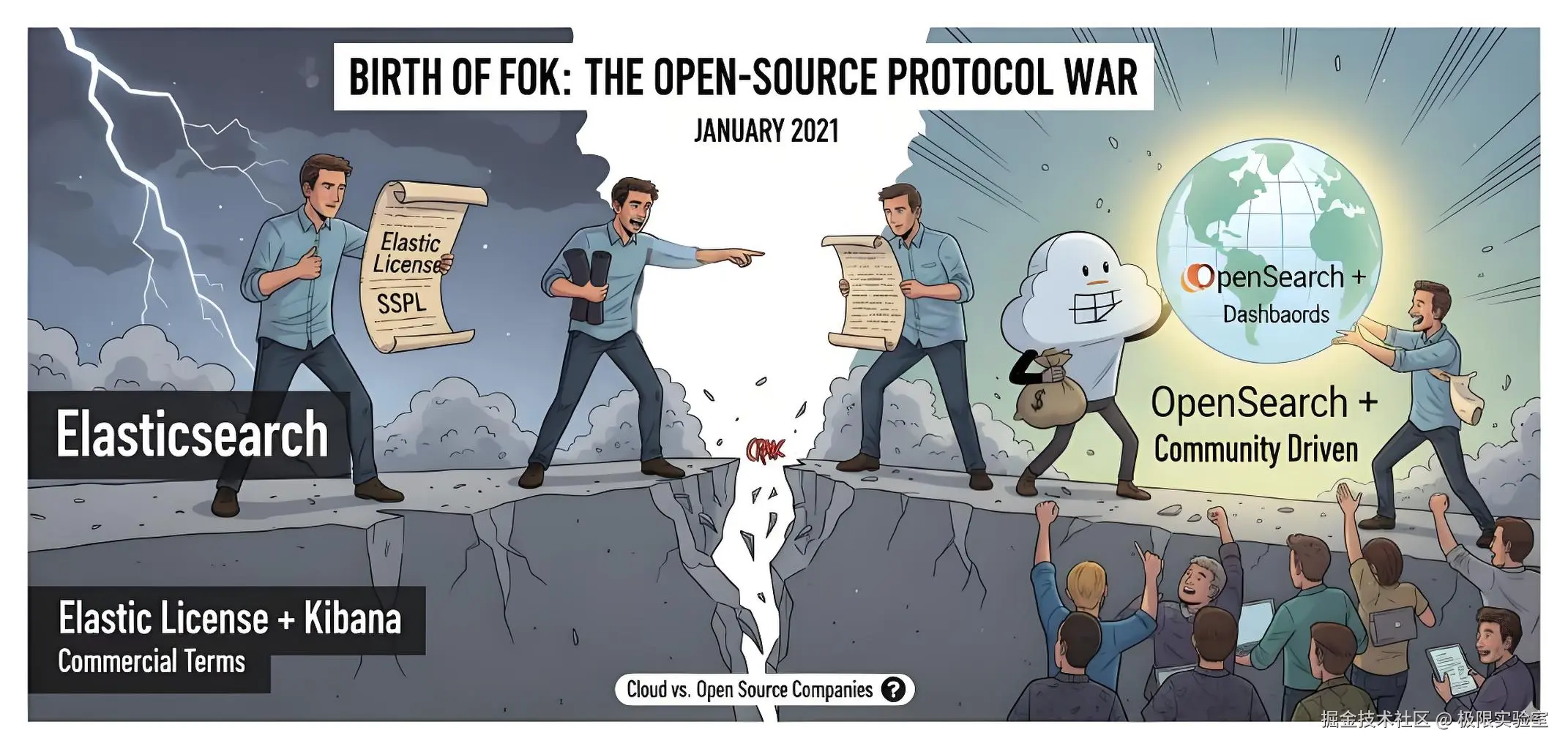 时间回到 2021 年 1 月,Elastic 公司宣布 Elasticsearch 从 7.11 版本起不再使用 Apache 2.0 协议,而改为 Elastic License 与 SSPL。这一决定立刻在社区和产业界引发巨大争议。