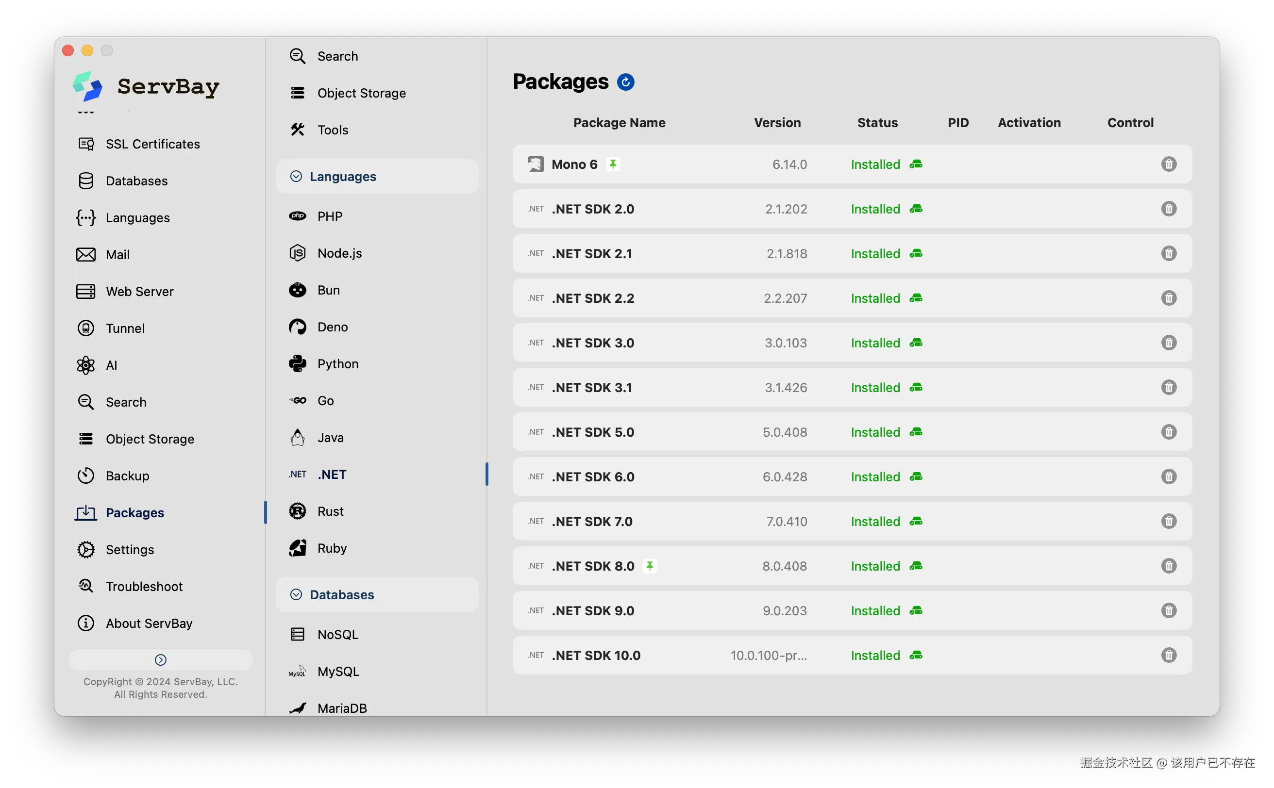 用ServBay,一键部署Go和.Net开发环境,并且还能自由切换版本。尤其是对于mac用户,想要.Net的开发环境也只是点一下鼠标的事情。
