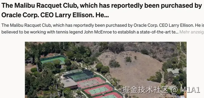 ▲ 2007年,埃里森以690万美元的价格收购了Malibu网球俱乐部。