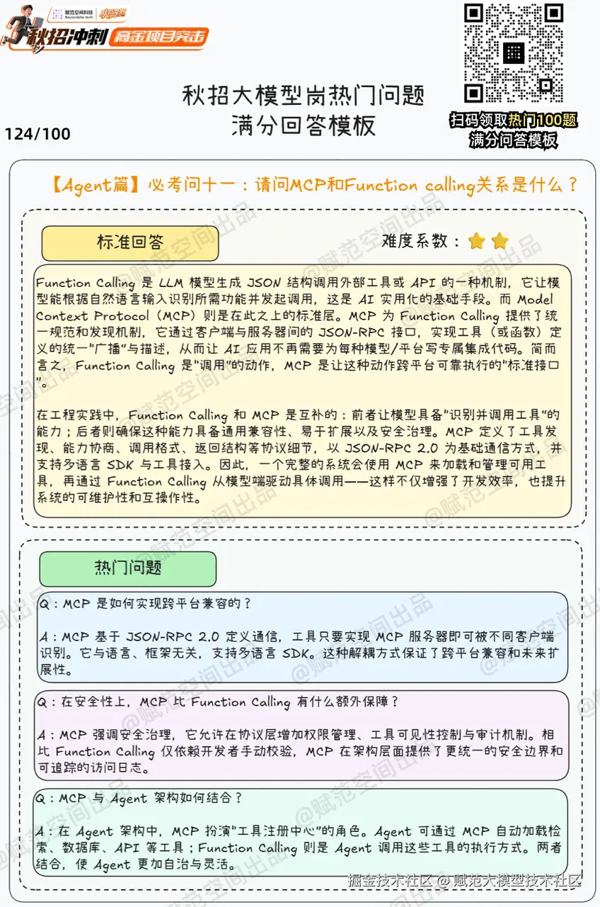 💡包含内容: 聚焦MCP基础知识与实践!MCP与Function calling的关系,服务器开发流程,如何跨平台兼容,Agent如何接入MCP,MCP调用如何保证并发~