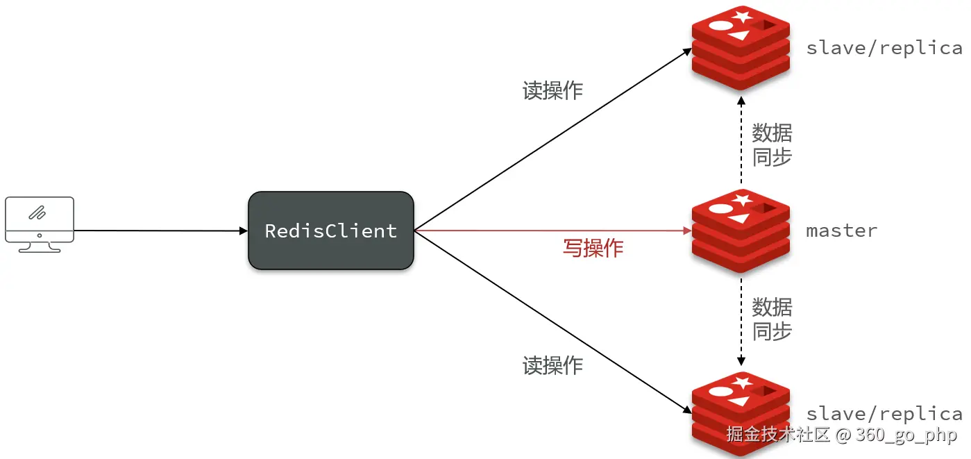 Redis多副本,采用主从(replication)部署结构,相较于单副本而言最大的特点就是主从实例间数据实时同步,并且提供数据持久化和备份策略。主从实例部署在不同的物理服务器上,根据公司的基础环境配置,可以实现同时对外提供服务和读写分离策略。