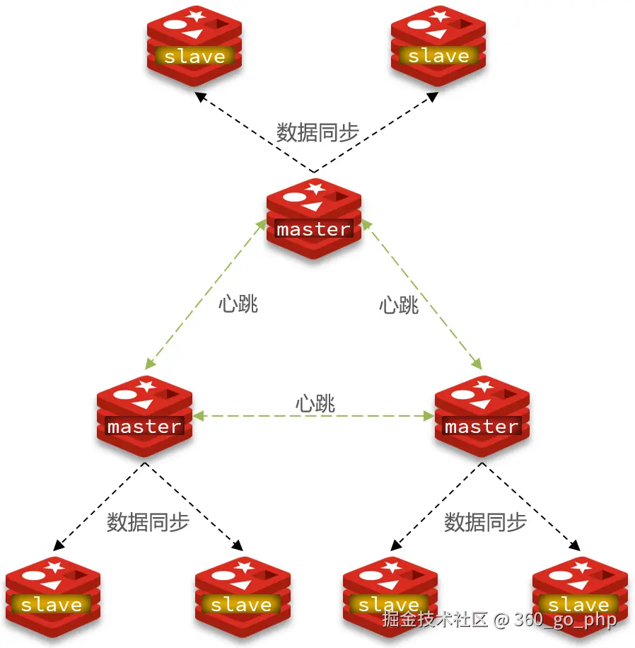 节点互相之间不断通信,保持整个集群所有节点的数据是完整的。 主要交换故障信息、节点的增加和移除、hash slot信息等。