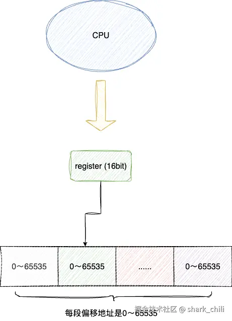 - 物理地址 = 段地址 × 16 + 偏移地址