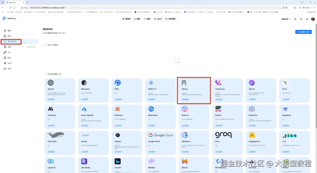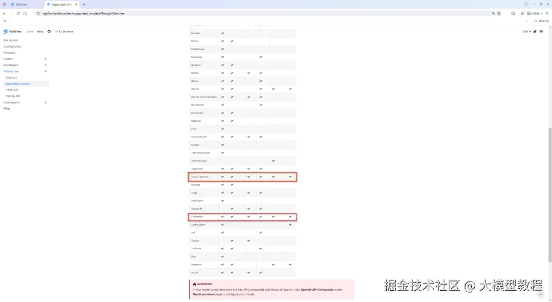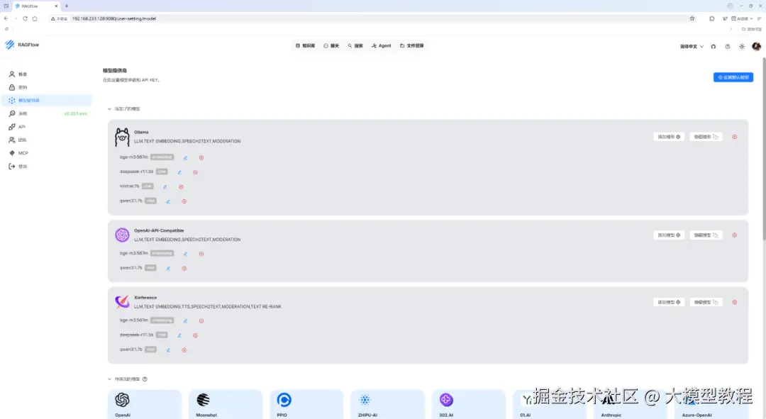 RAGFlow支持的大模型完整清单列表,具体如下图所示:
