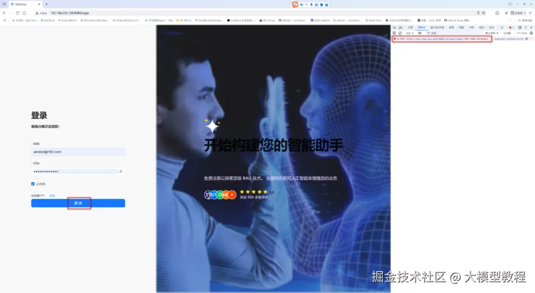 问题1:RAGFlow 登录报错502(Bad Gateway)